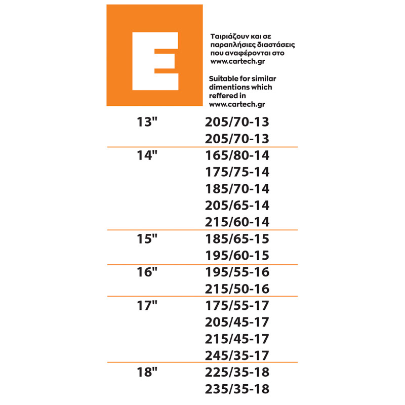 - Ταιριάζουν σε διάφορα μεγέθη ελαστικών
